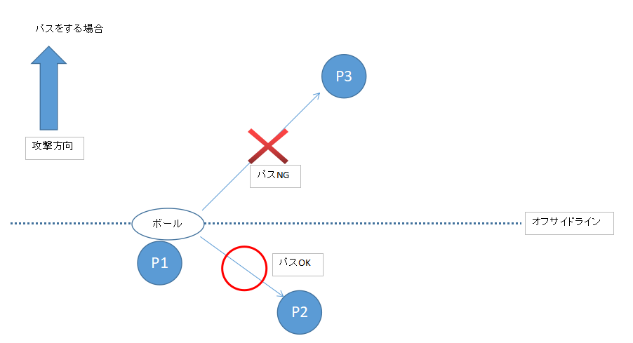 1)ボールより前にいる人にパスはできません