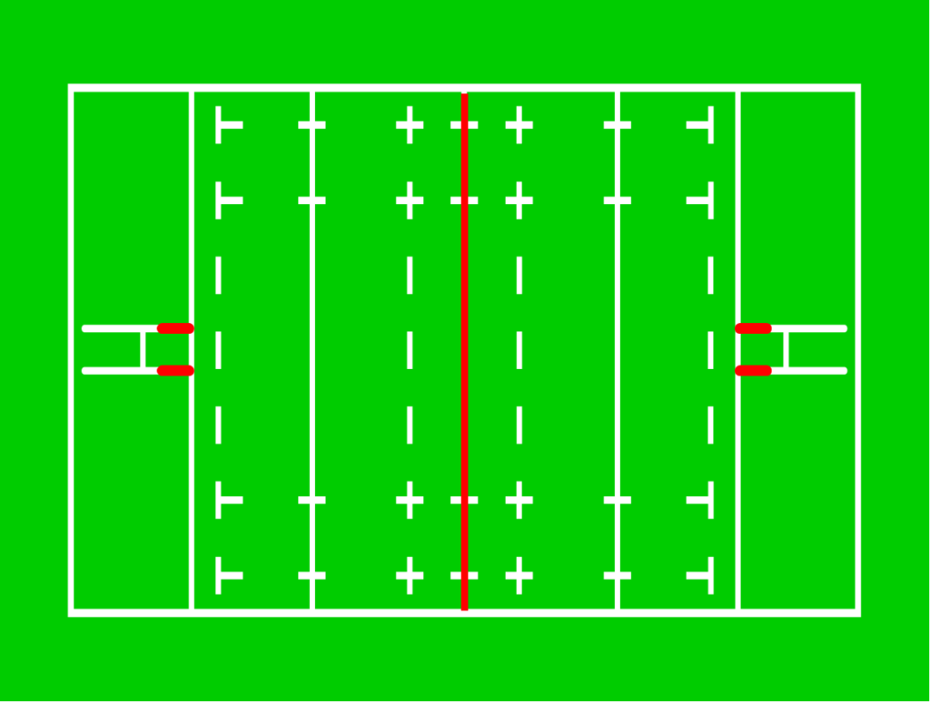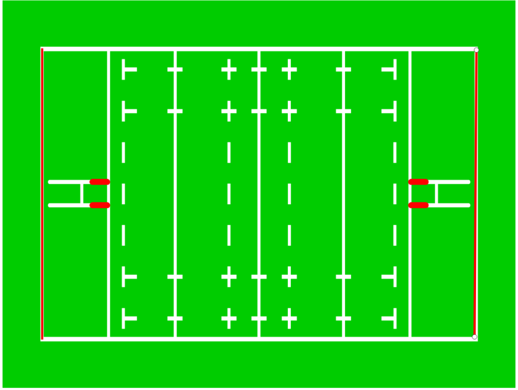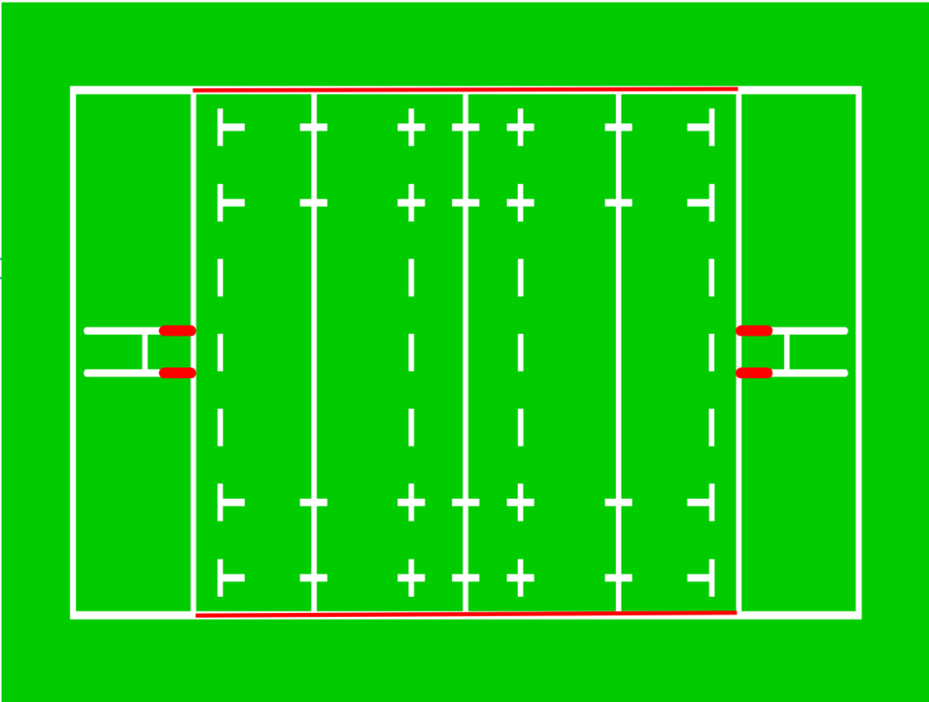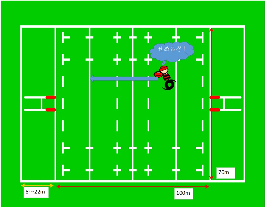 この広いグラウンドをパスやキックで攻めながらトライゾーンを目指していくことになります。
