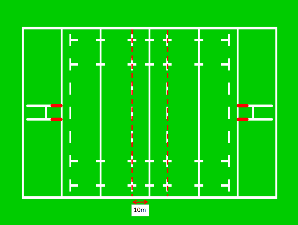 ハーフウェイラインから10mのところに自陣・相手陣側に1本ずつ引かれます。